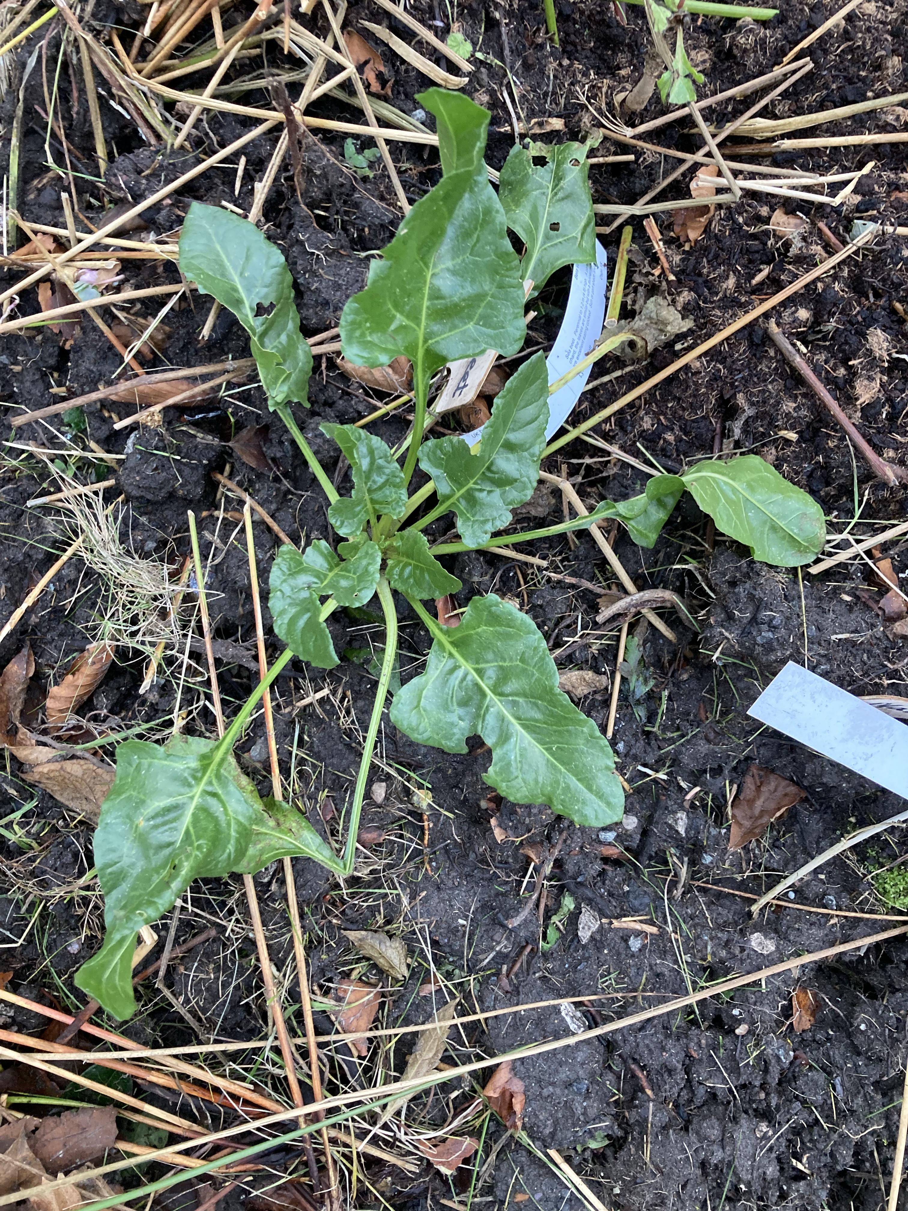 We started the project in an area of the garden where there were already mature trees and fruit trees. We cleared a mature ornamental shrubbery leaving two large beech trees, a Mountain Ash, a cherry and a mahonia. We filled the space with lots of herbs that we had been keeping in pots: bay, rosemary, two types of sage, marjoram, mint and chives. We added a hedge of raspberry canes at the back of the border to mark the edge of the bed. We added asparagus and some perennial kale, spinach and sorrel to the bed. Between the two beech trees where it was very shaded, we added woodland plants like violets, wood sorrel and wild garlic.