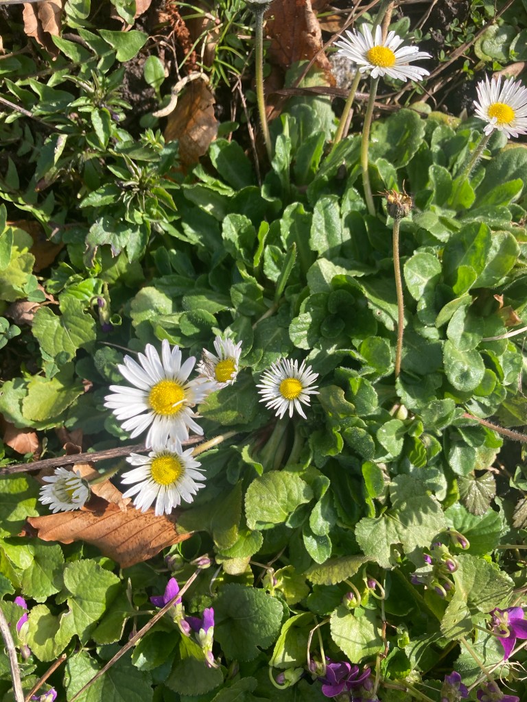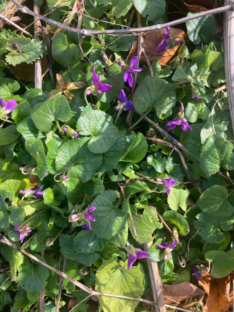 We’ve reached the winter solstice. The early sunset is cheered by the Christmas lights. In the forest garden, with less than eight hours of daylight, a few resilient plants keep growing and flowering.